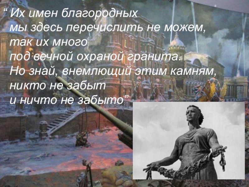 “ Их имен благородных  мы здесь перечислить не можем,  так их много  под вечной