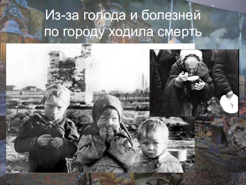 Слайд 10Из-за голода и болезней по городу ходила смерть
