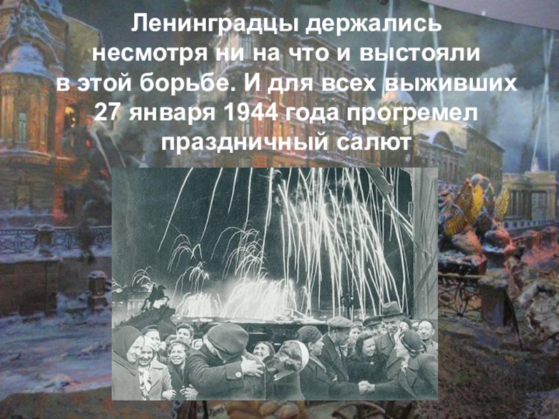 несмотря ни на что и выстояли в этой борьбе. И для всех выживших 27 января 1944 года прогремел праздничный салют