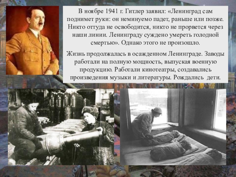 Слайд 12В ноябре 1941 г. Гитлер заявил: «Ленинград сам поднимет руки: он
