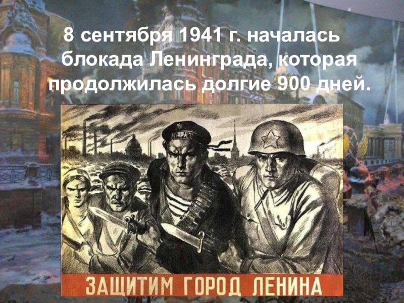 Слайд 48 сентября 1941 г. началась блокада Ленинграда, которая продолжилась долгие 900