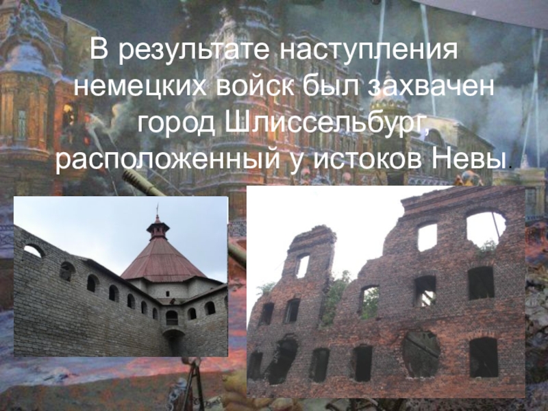 Слайд 3В результате наступления немецких войск был захвачен город Шлиссельбург, расположенный у