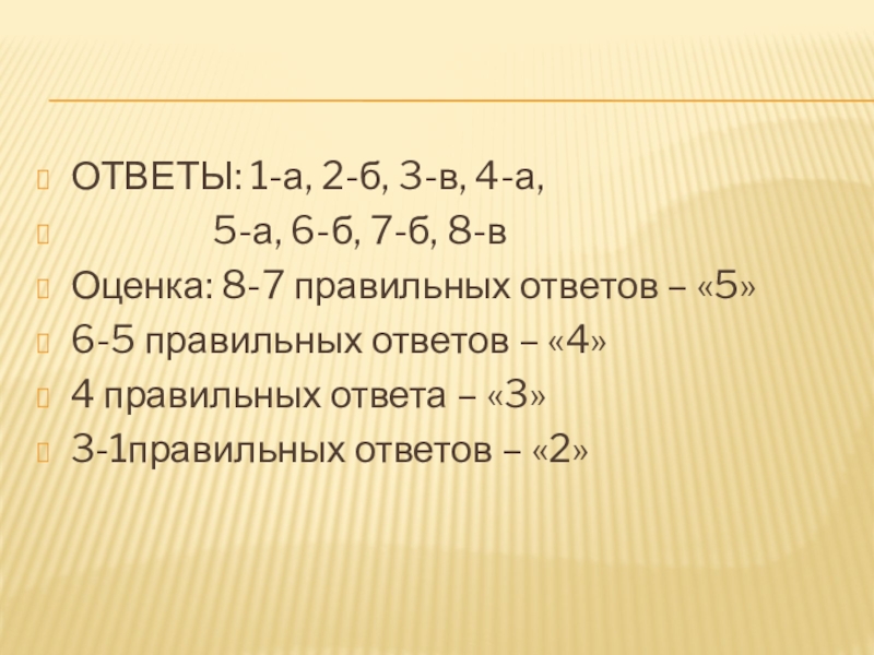 Слайд 28ОТВЕТЫ: 1-а, 2-б, 3-в, 4-а,