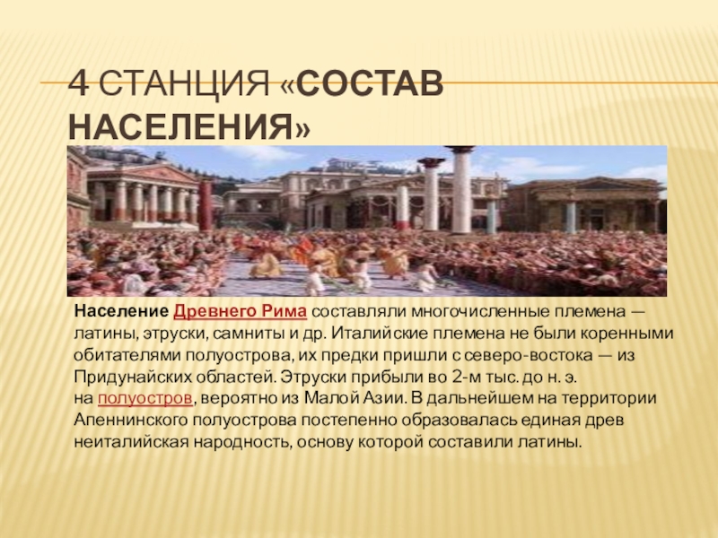 Население Древнего Рима составляли многочисленные племена — латины, этруски, самниты