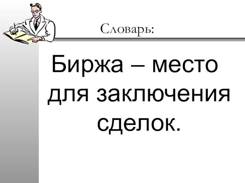 Словарь:Биржа – место для заключения сделок.