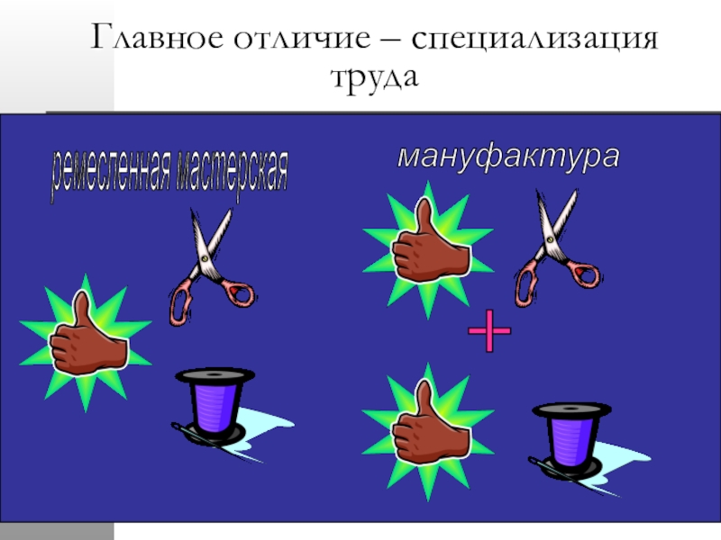 ремесленная мастерская мануфактура Главное отличие – специализация труда