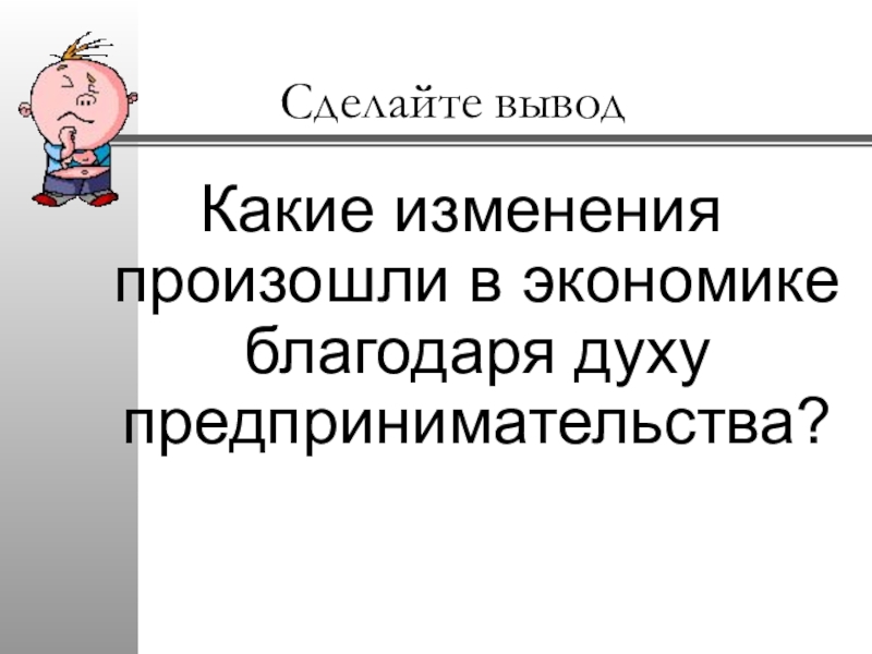 Сделайте выводКакие изменения произошли в экономике благодаря духу предпринимательства?
