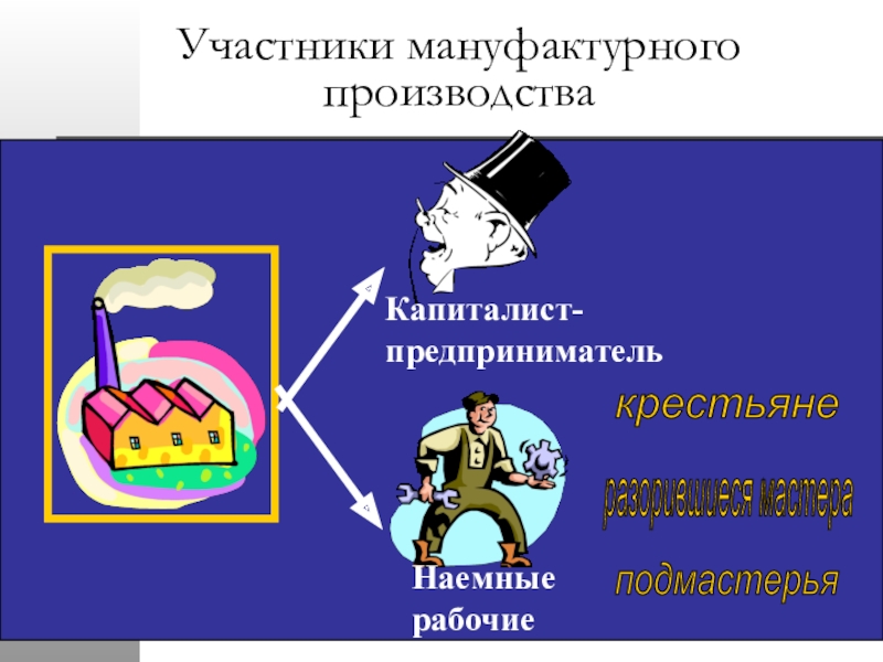 крестьяне разорившиеся мастера подмастерья Участники мануфактурного производства