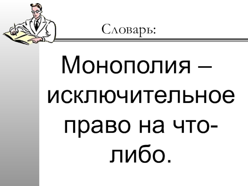 Словарь:Монополия – исключительное право на что-либо.