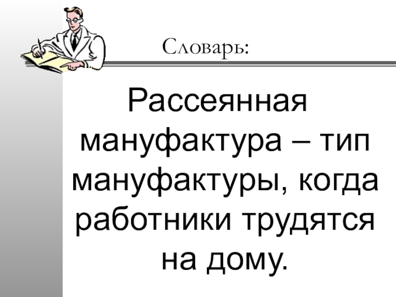Рассеянная мануфактура – тип мануфактуры, когда работники трудятся на дому.