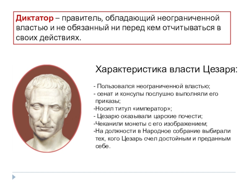 Характеристика власти Цезаря: