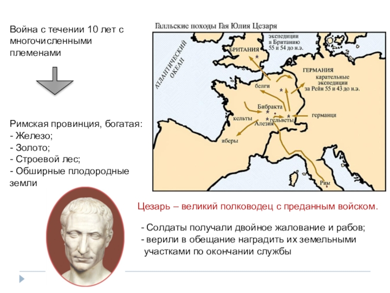 Цезарь – великий полководец с преданным войском.