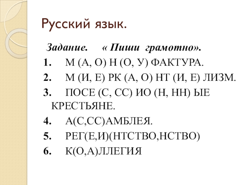 Задание. « Пиши грамотно».