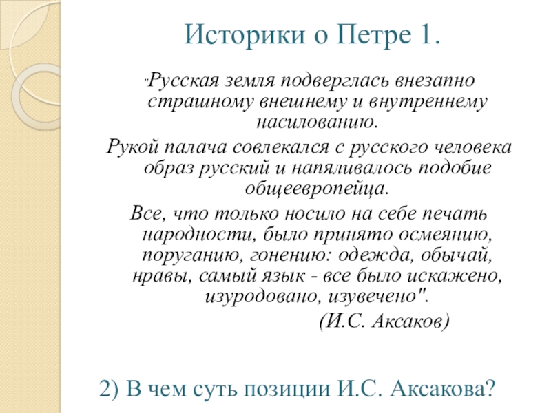 2) В чем суть позиции И.С. Аксакова?