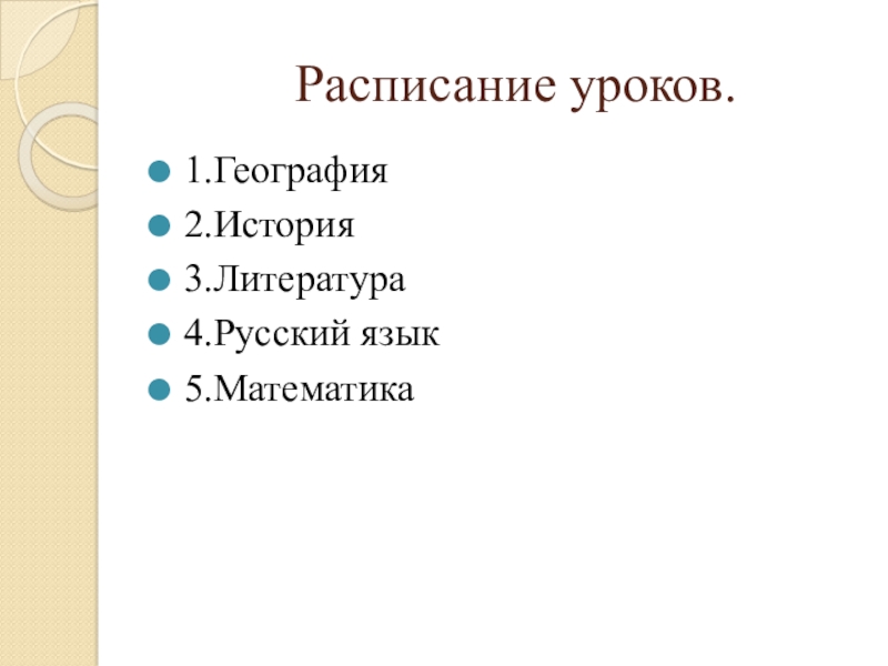Слайд 5 Расписание уроков.