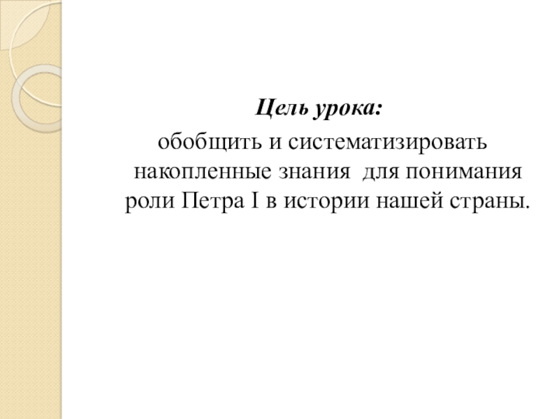 обобщить и систематизировать накопленные знания для понимания роли Петра