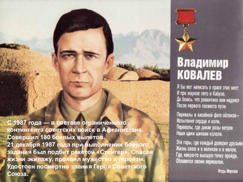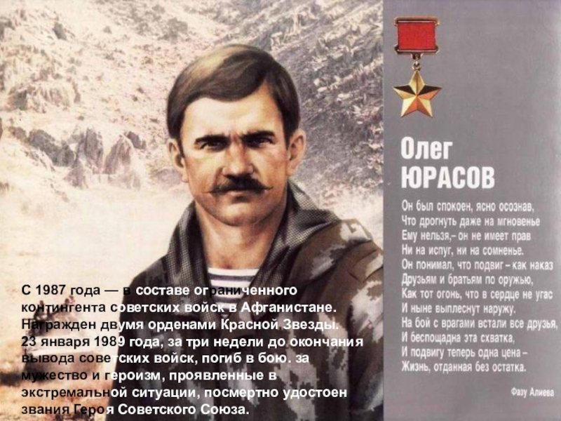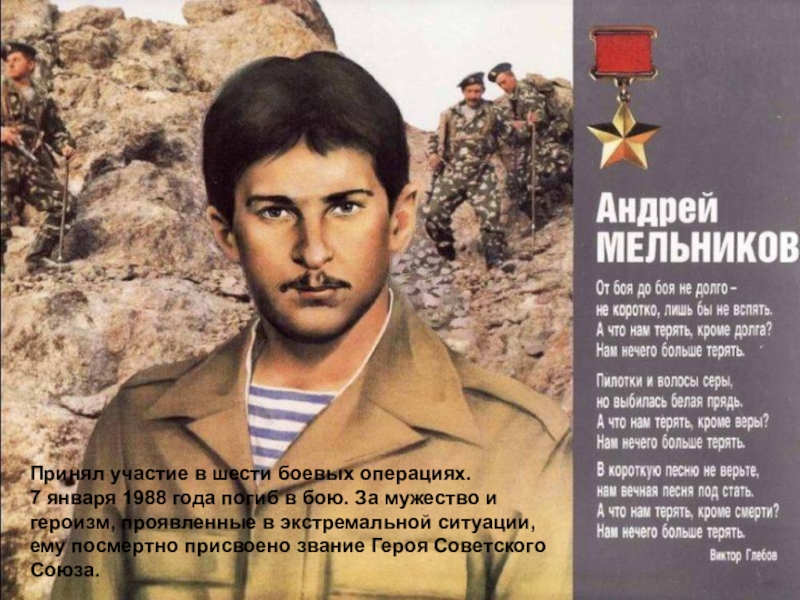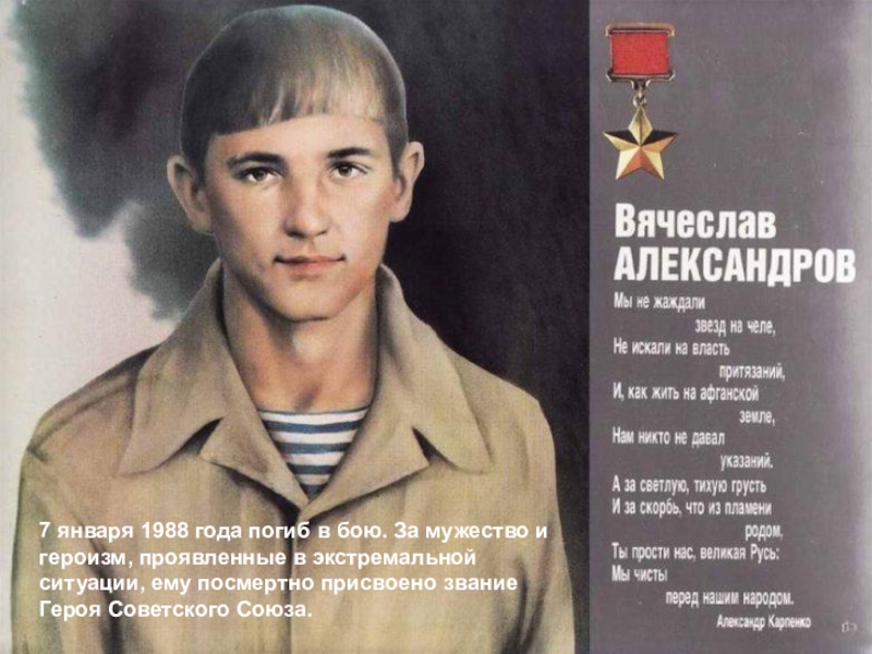 Слайд 107 января 1988 года погиб в бою. За мужество и героизм,