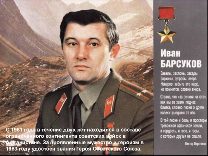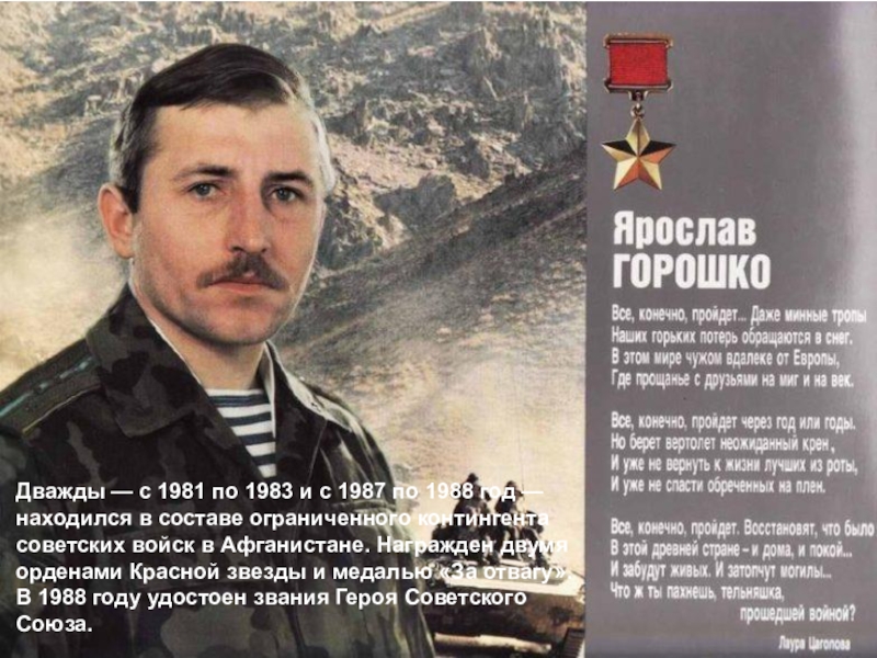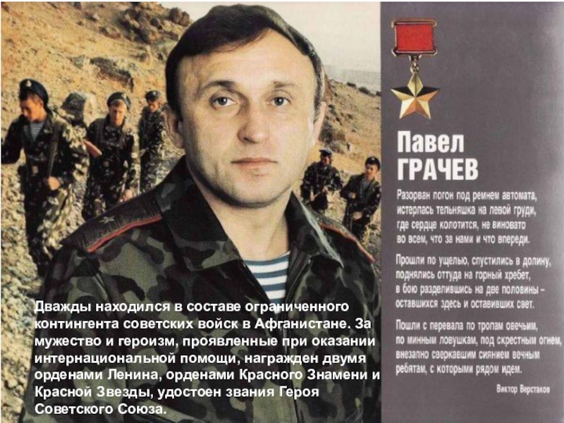 Слайд 6Дважды находился в составе ограниченного контингента советских войск в Афганистане. За