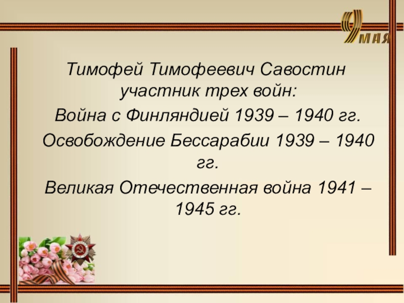 Слайд 17 Тимофей Тимофеевич Савостин участник трех войн: