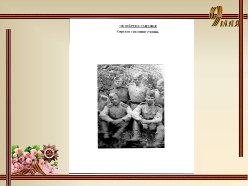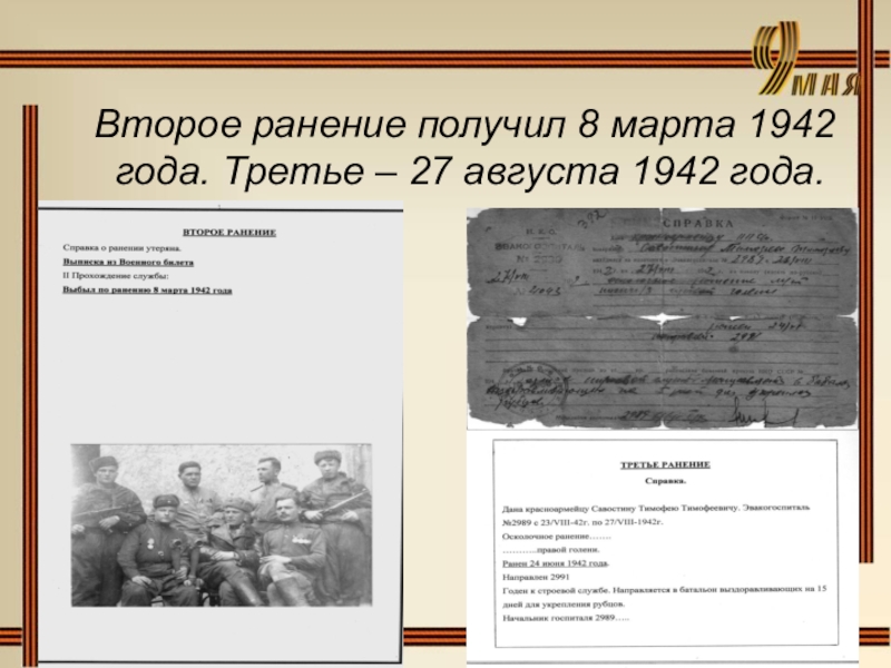 Слайд 8 Второе ранение получил 8 марта 1942 года. Третье – 27