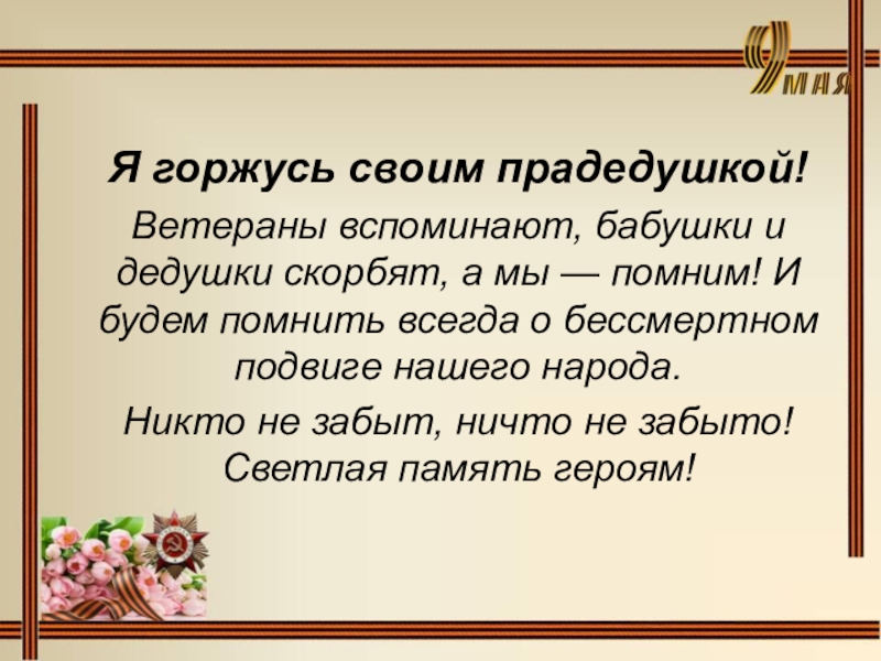 дедушки скорбят, а мы — помним! И будем помнить всегда о бессмертном подвиге нашего народа.