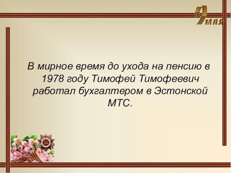 Тимофей Тимофеевич работал бухгалтером в Эстонской МТС.