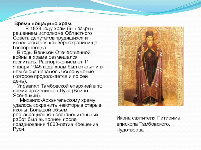 Икона святителя Питирима, епископа Тамбовского, Чудотворца.