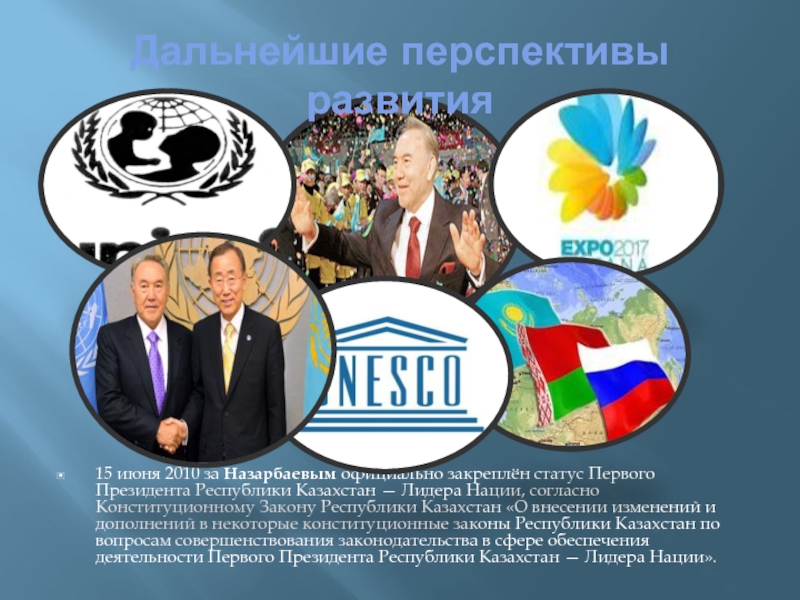 15 июня 2010 за Назарбаевым официально закреплён статус Первого Президента