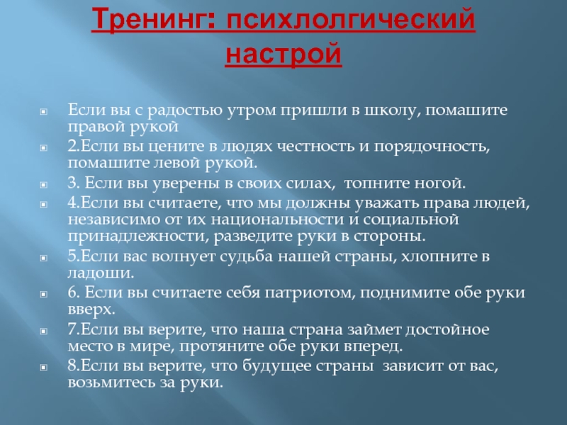 Слайд 3Тренинг: психлолгический настрой
