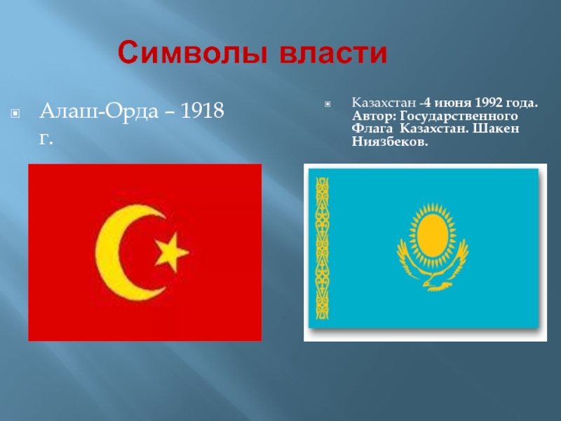 Ответить на вопрос: какими приоритетами руководствовались авторы символов РК, а какими Алаш- Орды? Ответ: У Казахстана символы светского направления, центральным символом является шанырак, объединяющий народы, а у «Алаш- Орды» более религиозного напрвления.