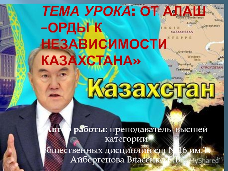 Слайд 1Тема урока: От Алаш –Орды к независимости Казахстана»