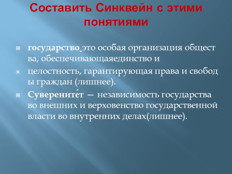 Слайд 7Составить Синквейн с этими понятиями