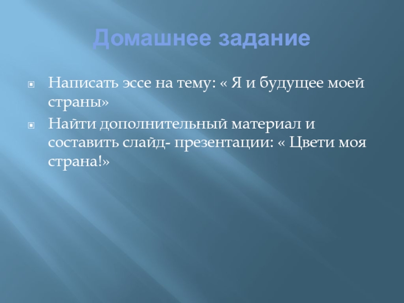 дополнительный материал и составить слайд- презентации: « Цвети моя страна!»