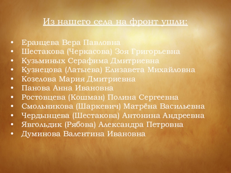 Слайд 6Из нашего села на фронт ушли: