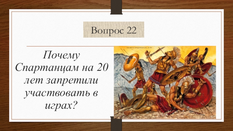Вопрос 22Почему Спартанцам на 20 лет запретили участвовать в играх?