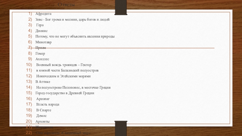 ОтветыАфродитаЗевс - Бог грома и молнии, царь богов и людей ГераДионисПотому, что не могут объяснить явления природыМинотаврПриамГомерАхиллес