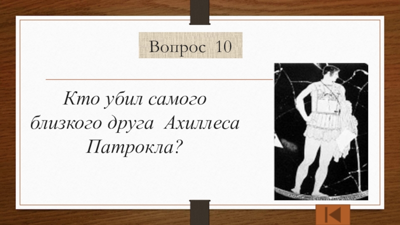Вопрос 10Кто убил самого близкого друга Ахиллеса Патрокла?