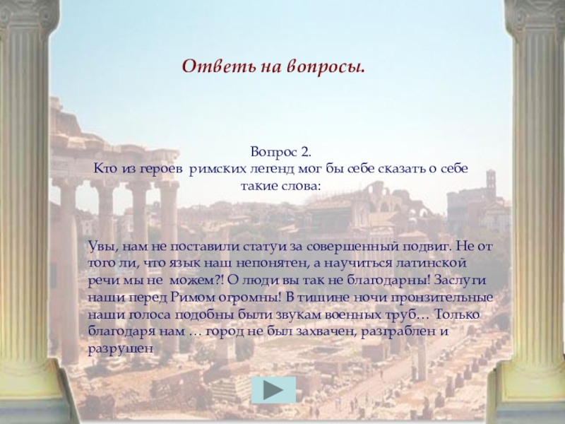 Кто из героев римских легенд мог бы себе сказать о себе такие слова: