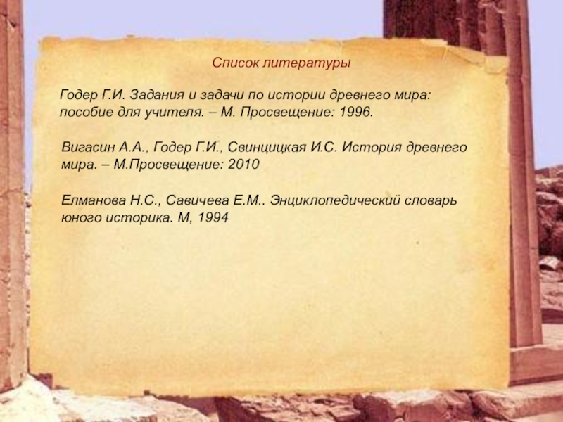 Вигасин А.А., Годер Г.И., Свинцицкая И.С. История древнего мира. – М.Просвещение: 2010