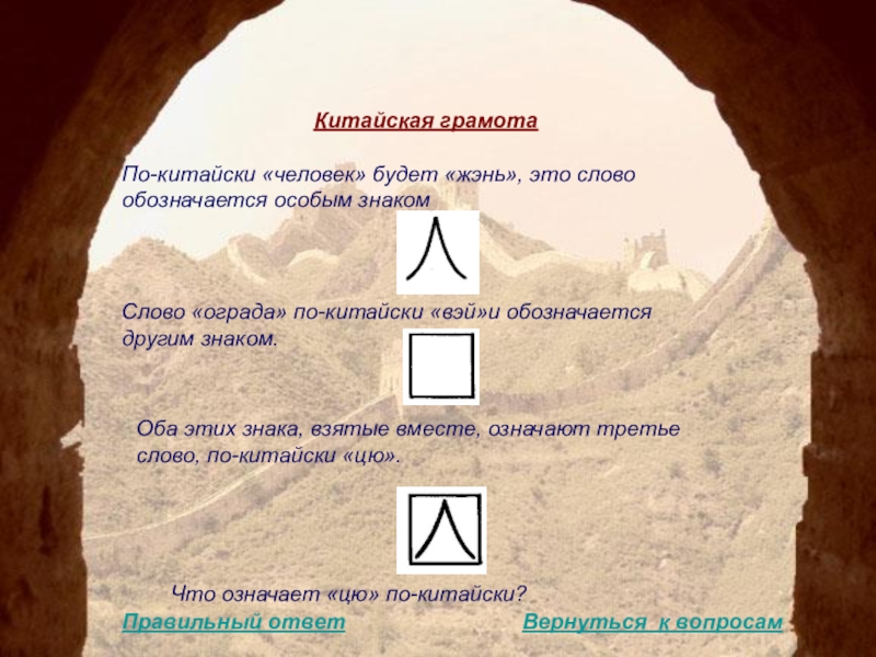 Оба этих знака, взятые вместе, означают третье слово, по-китайски «цю».