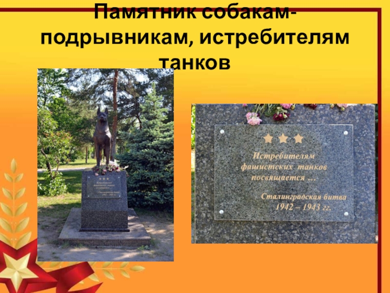 Слайд 11Памятник собакам-подрывникам, истребителям танков
