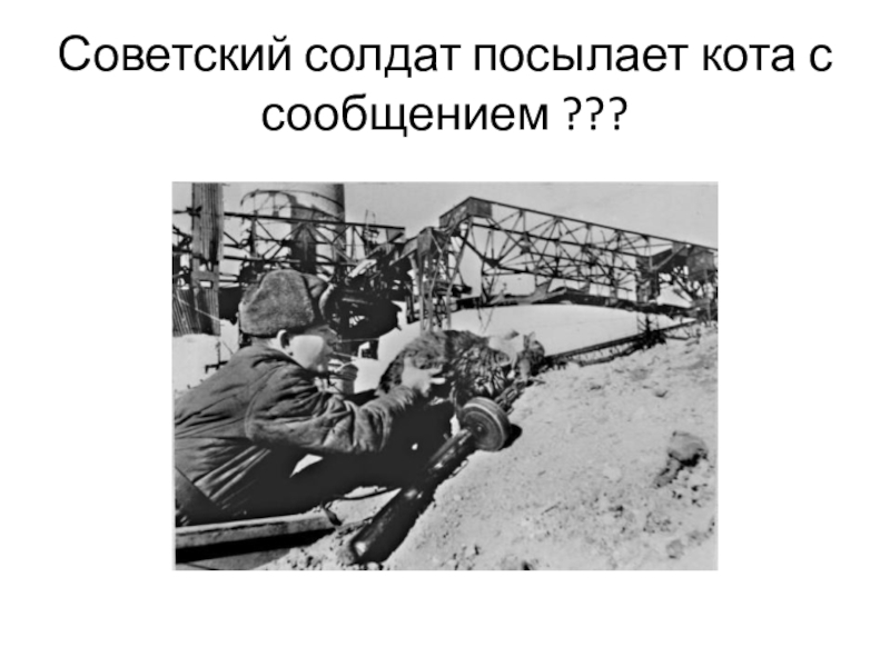 Слайд 23Советский солдат посылает кота с сообщением ???