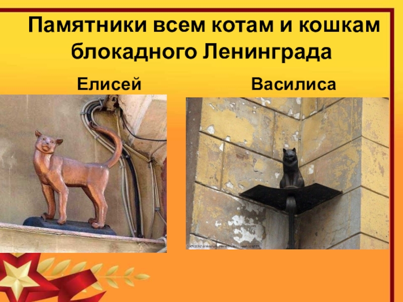 Памятники всем котам и кошкам блокадного ЛенинградаЕлисейВасилиса