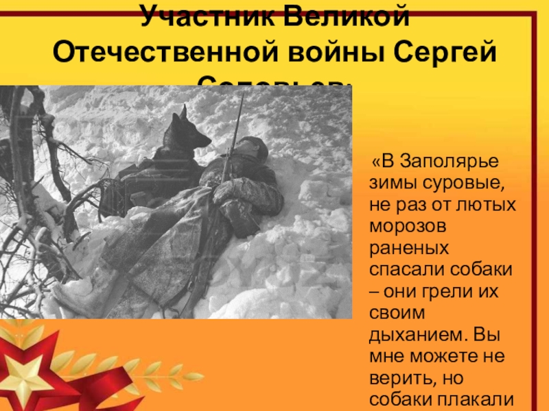 Слайд 15Участник Великой Отечественной войны Сергей Соловьев:
