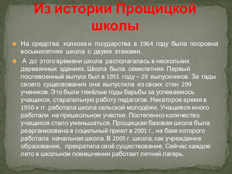 Из истории Прощицкой школы