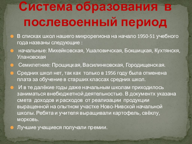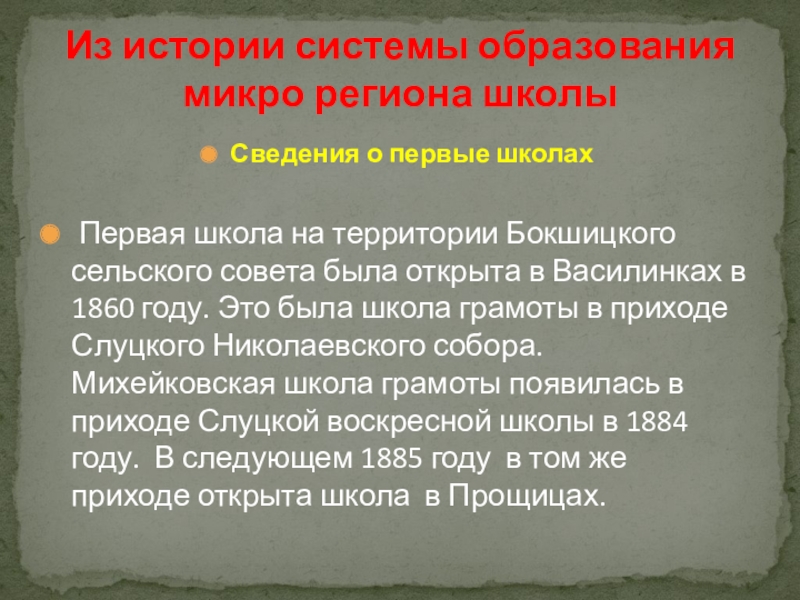 Из истории системы образования микро региона школы