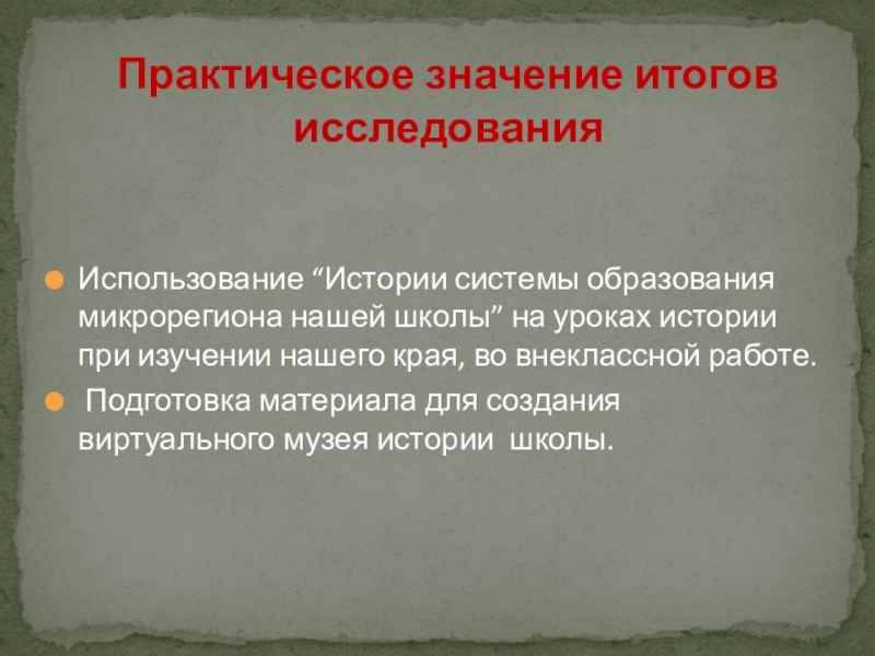 Практическое значение итогов исследования