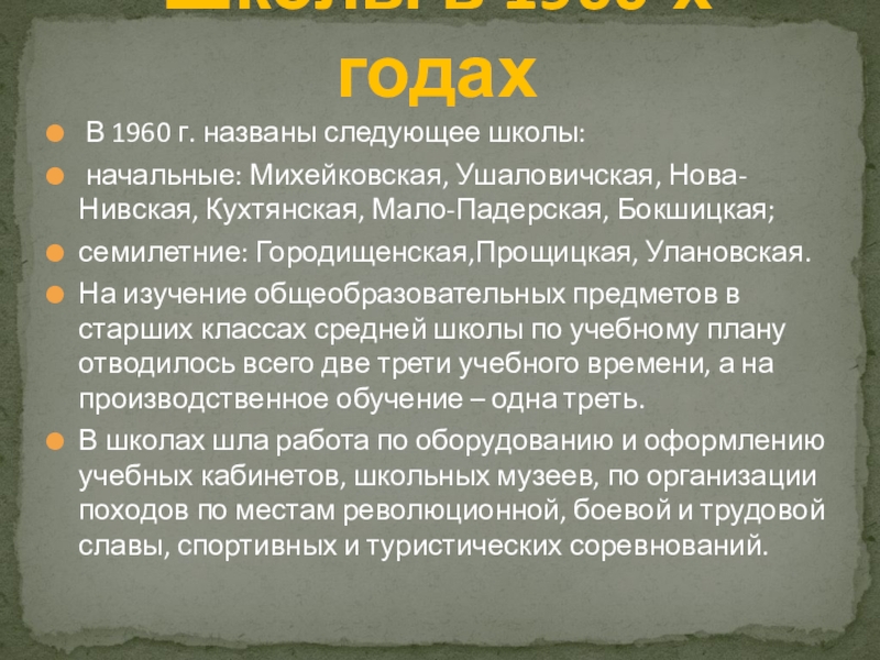 Школы в 1960-х годах