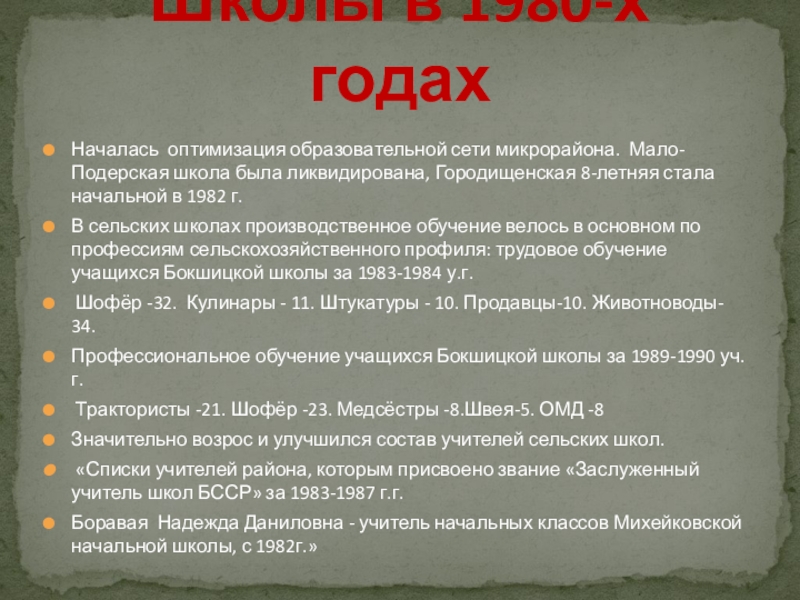 Школы в 1980-х годах