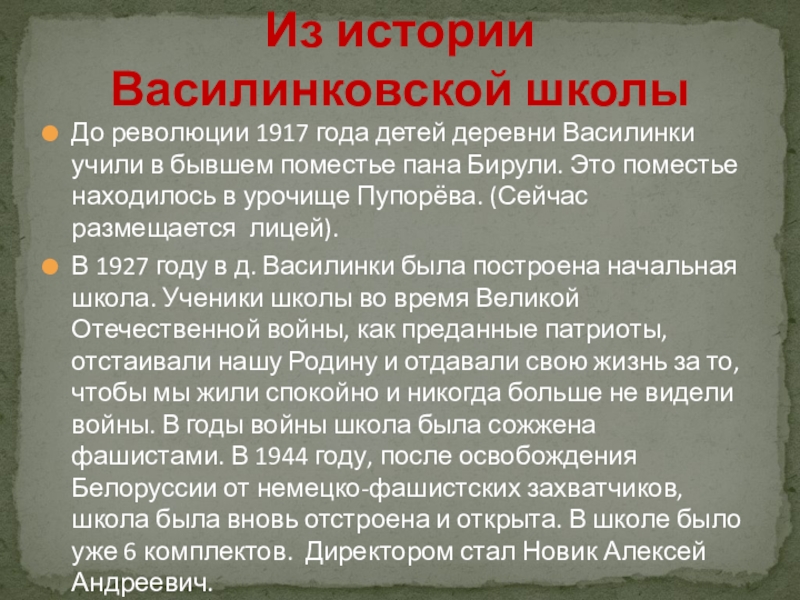 Василинковской школы